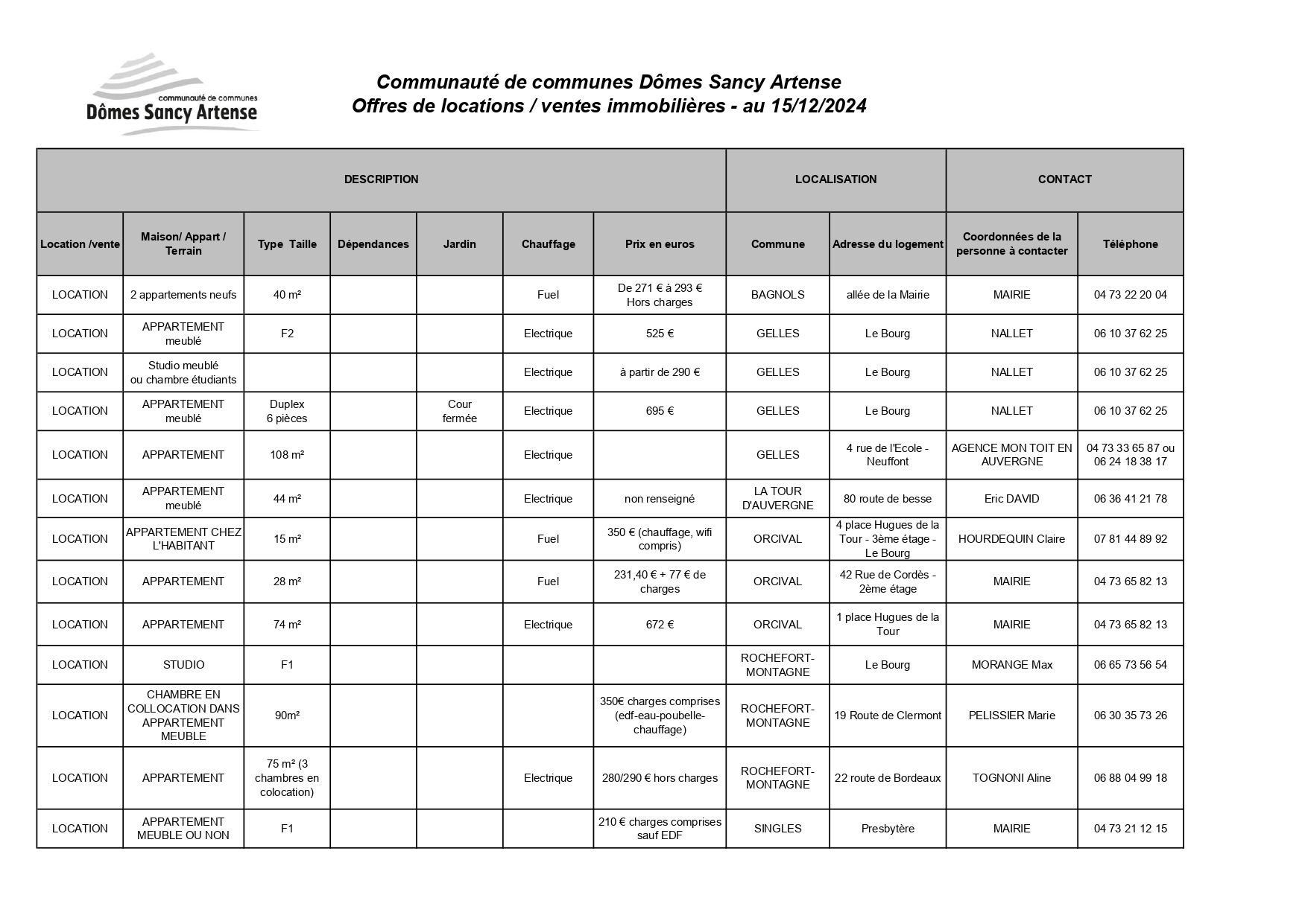 Vous êtes ici : Accueil > OBSERVATOIRE DU LOGEMENT - OFFRES DE LOCATION/VENTES IMMOBILIERES